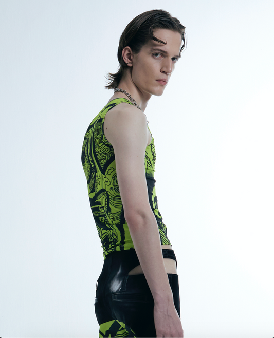 Neon graffiti cutout tank vest