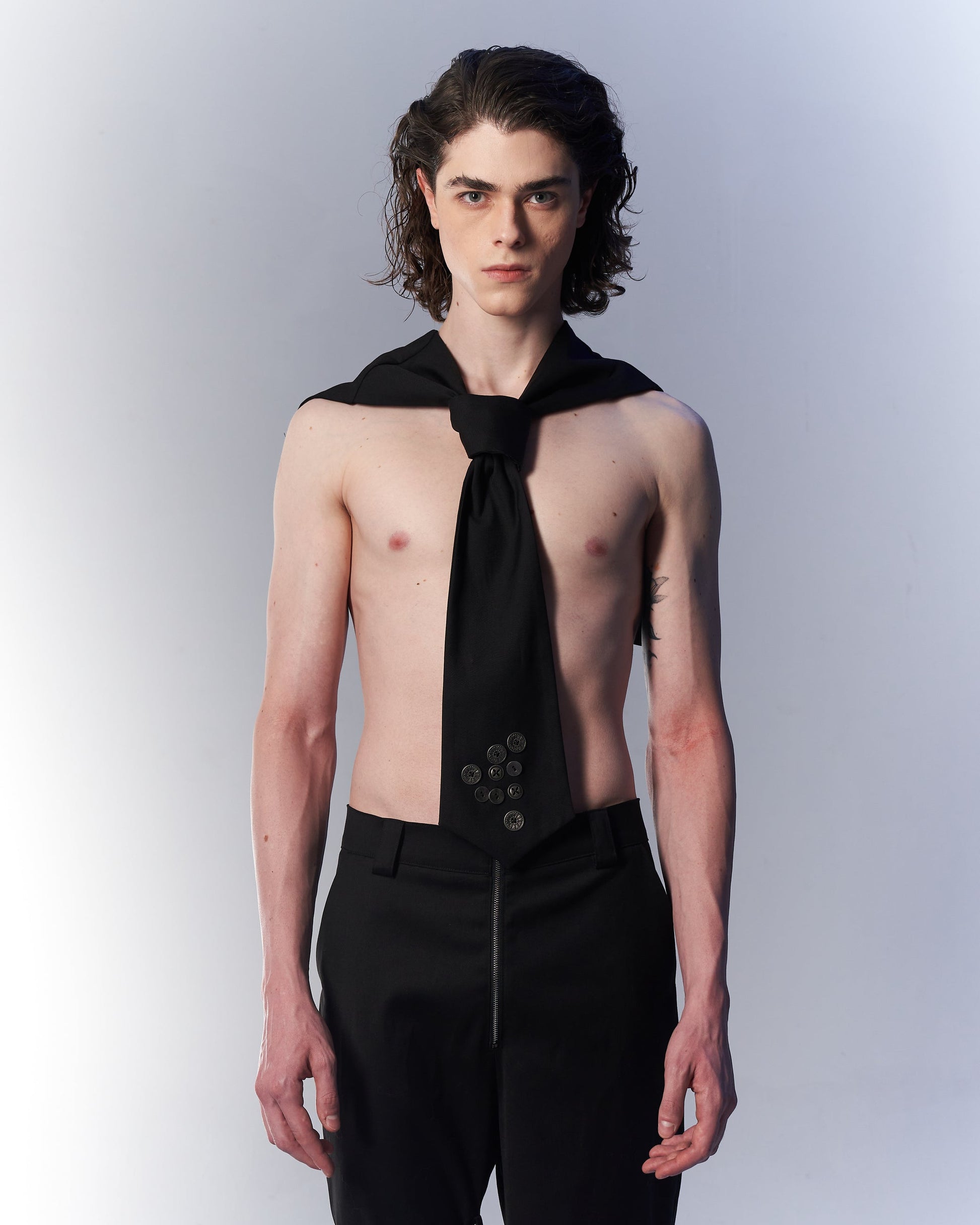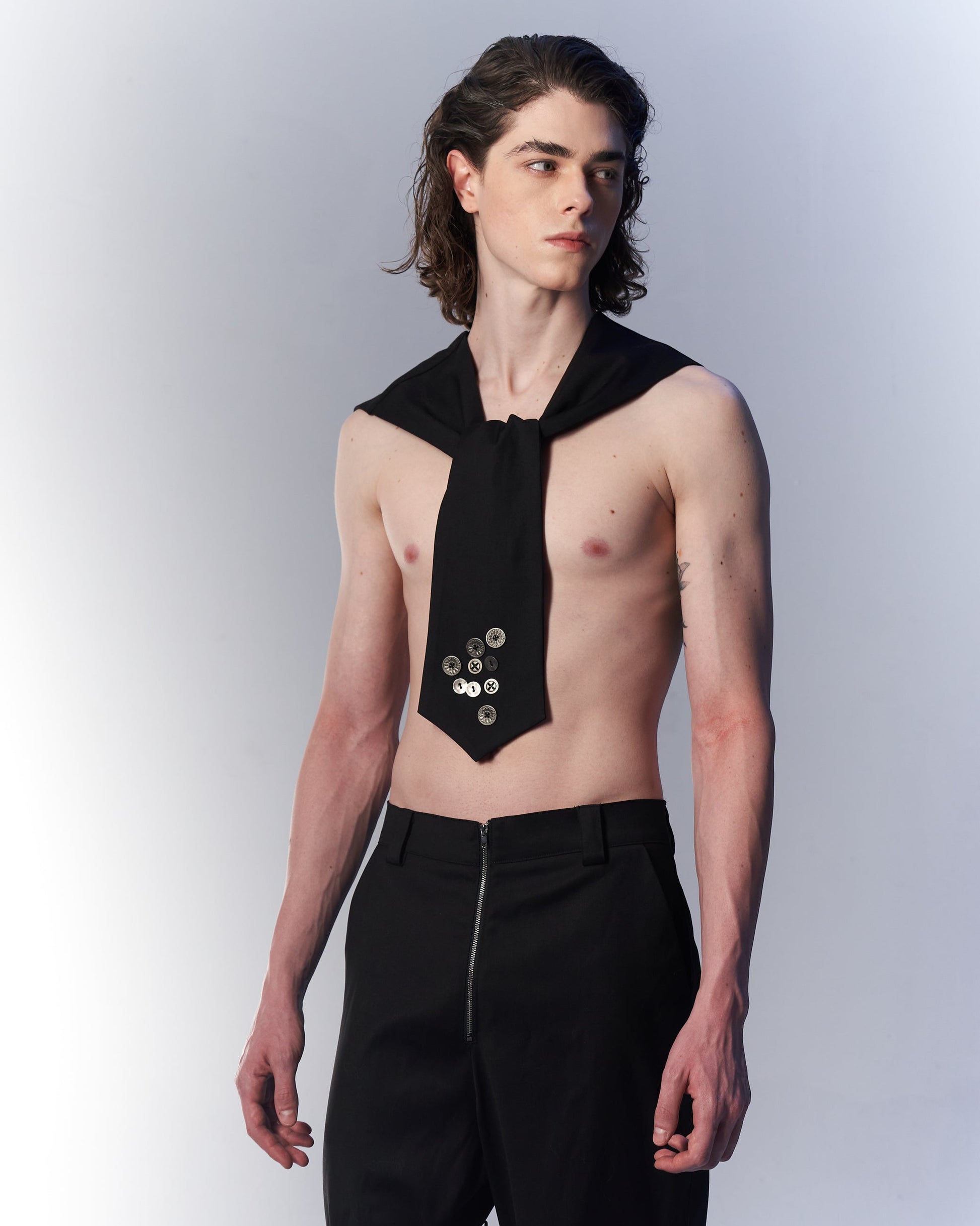 Black necktie metal button collar