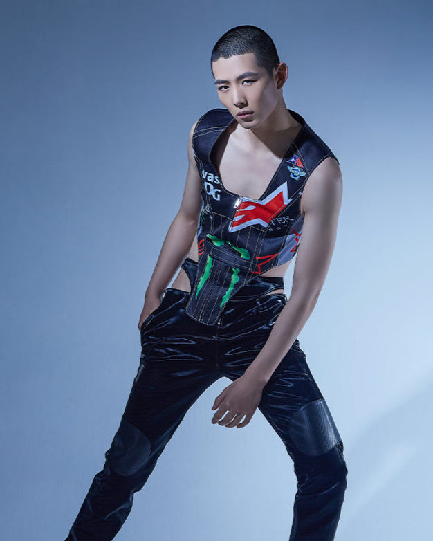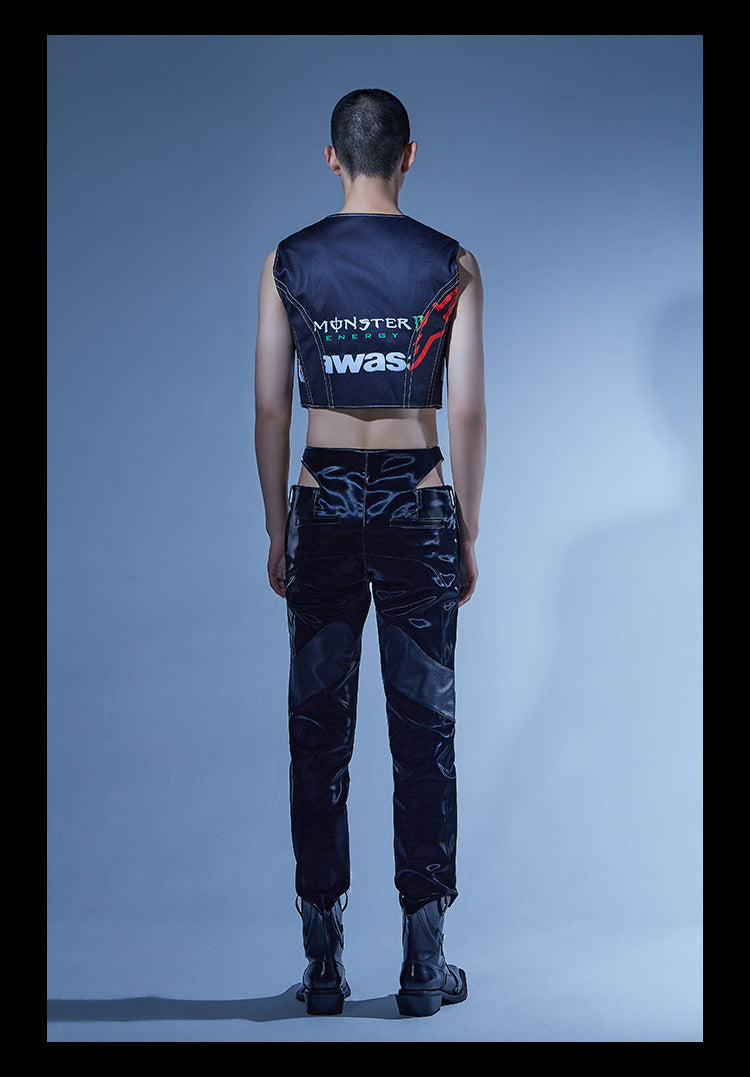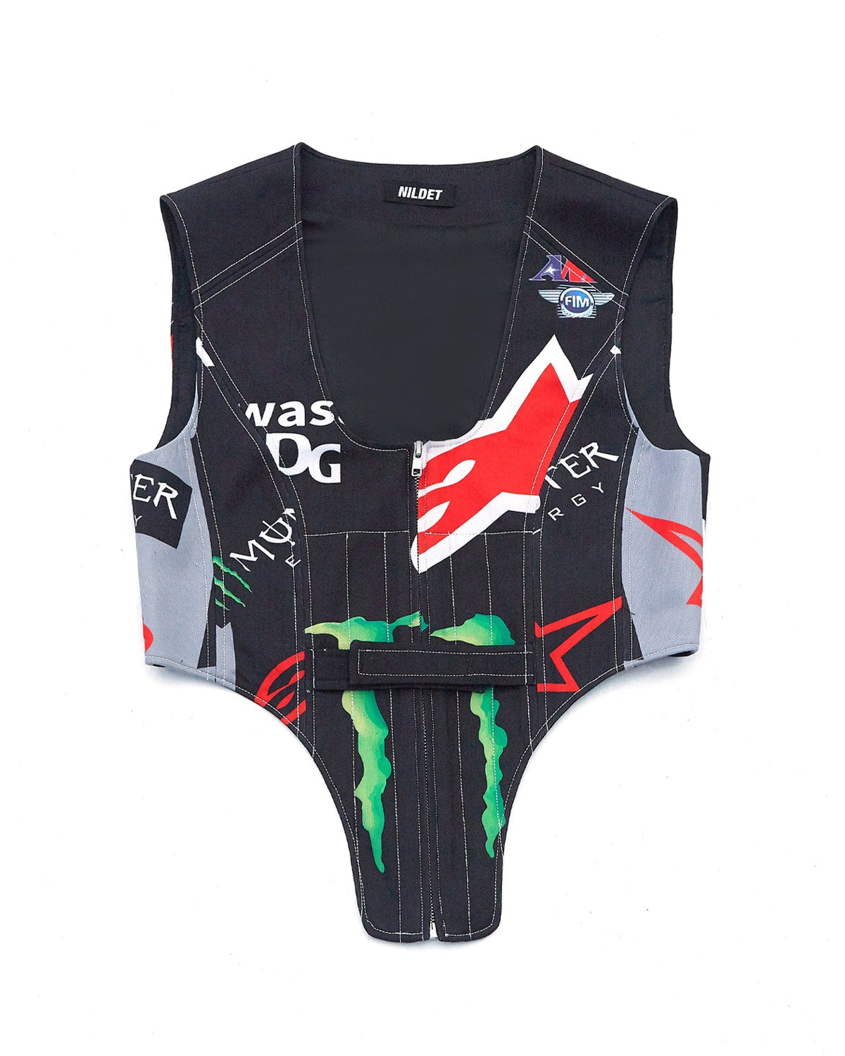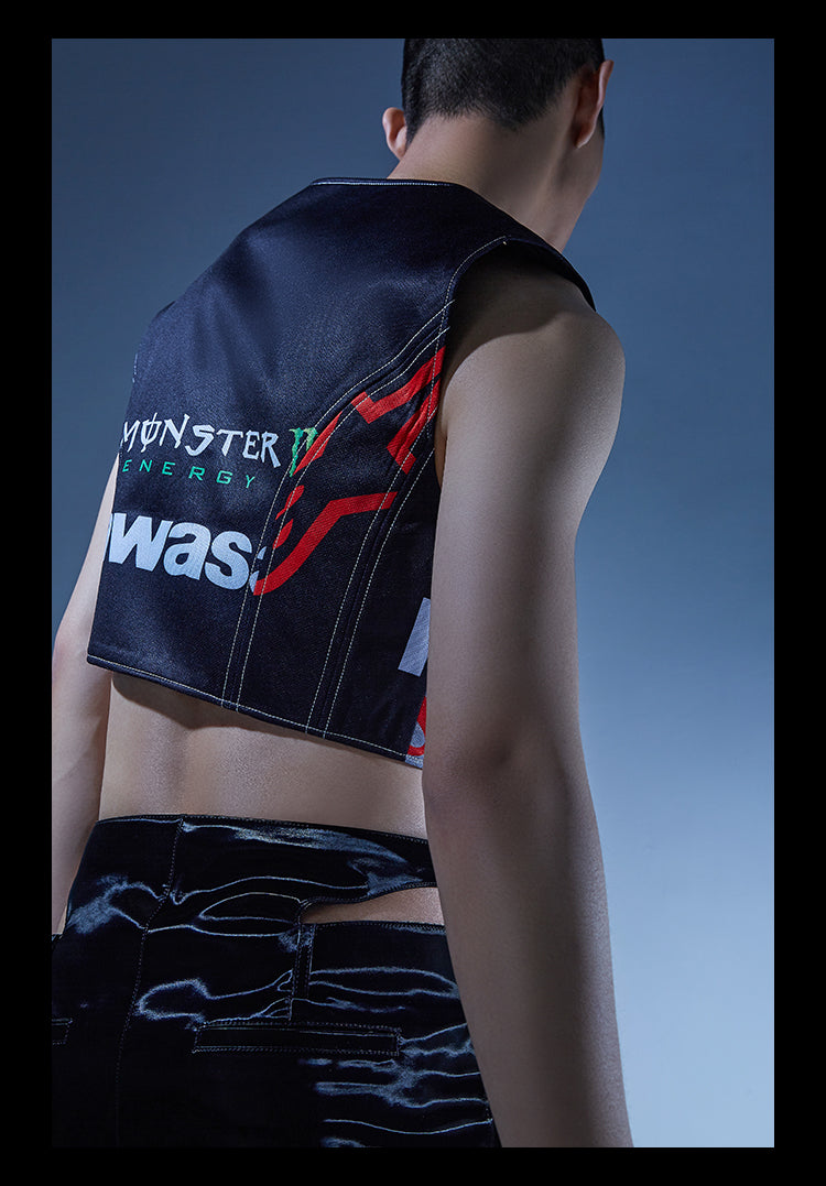Upcycled Monster racing merch vest, unisex, YKK zip closure, full lining.