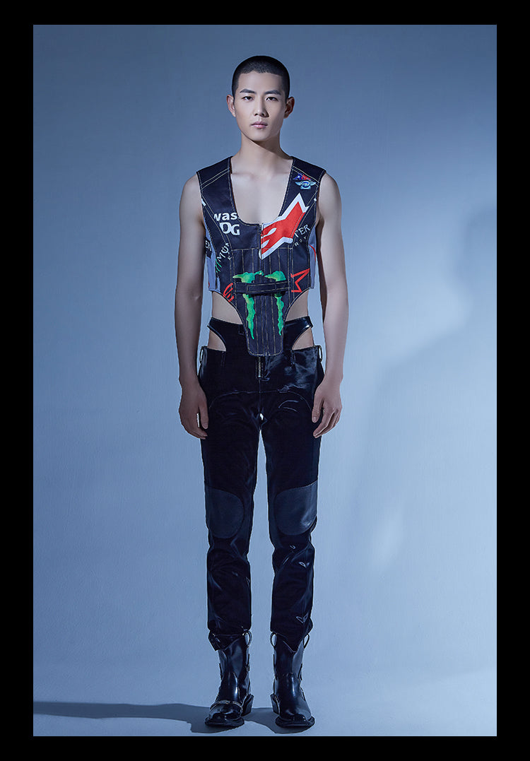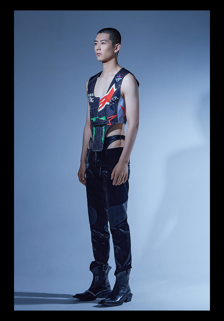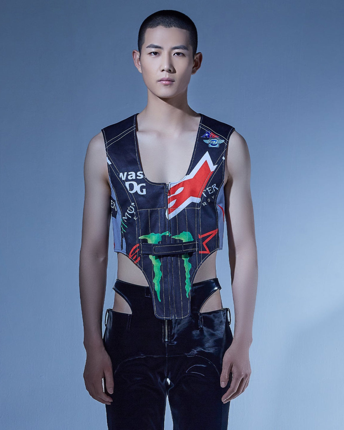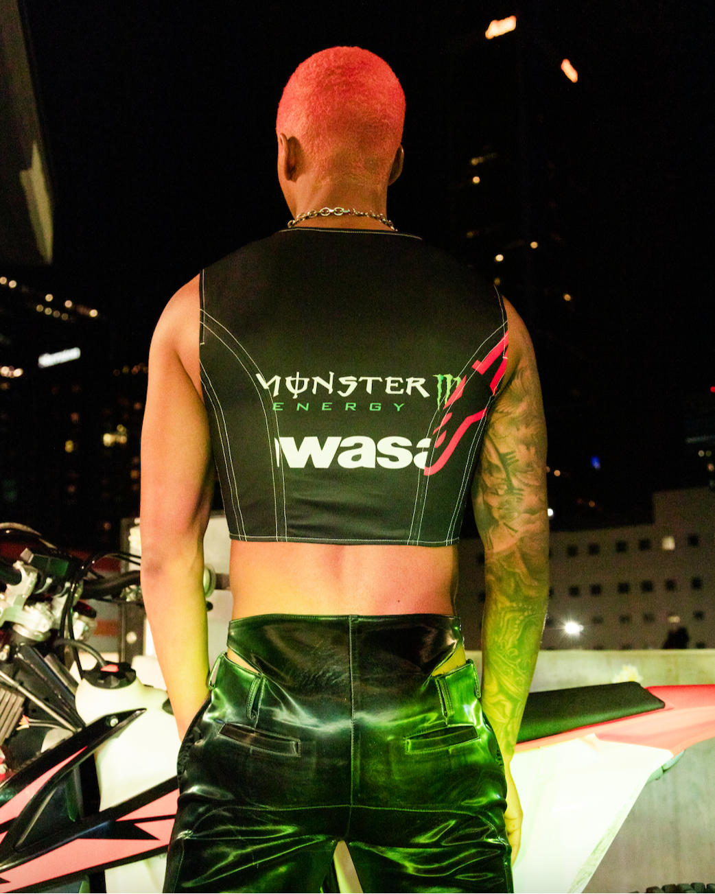 Upcycled Monster racing merch vest, unisex, YKK zip closure, full lining.